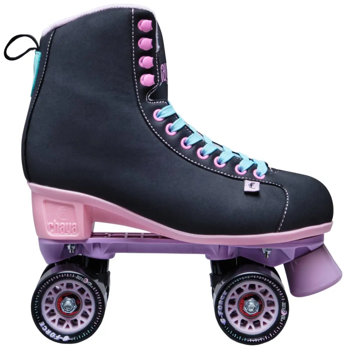 Een klassiek rolschaats design met een hoog uitgesneden PU-suède schoen en kunstschaats buitenzool voor maximale stabiliteit. De EVA schuim vulling en composietmateriaal trucks met stalen king pins zorgen voor comfort, stabiliteit en geruststellende levensduur van de rolschaats.